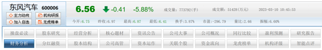 东风汽车降价带来了销量,同时也带来了股价的大幅下跌。东风汽车股价在3月7日出现10.03%的涨幅,最高探至7.28元,随后就出现下跌,3月10日盘中,东风汽车股价一度下跌近6%,3月13日,东风汽车股价继续下探3%,总市值124亿元左右。