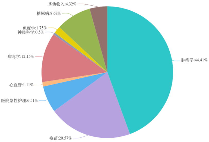 财报显示,2022年,默沙东药品板块收入主要来源于肿瘤学(230.95亿美元,44.41%)、疫苗(106.96亿美元,20.57%)、病毒学(63.17亿美元,12.15%)以及糖尿病(45.13亿美元,8.68%)四大业务。