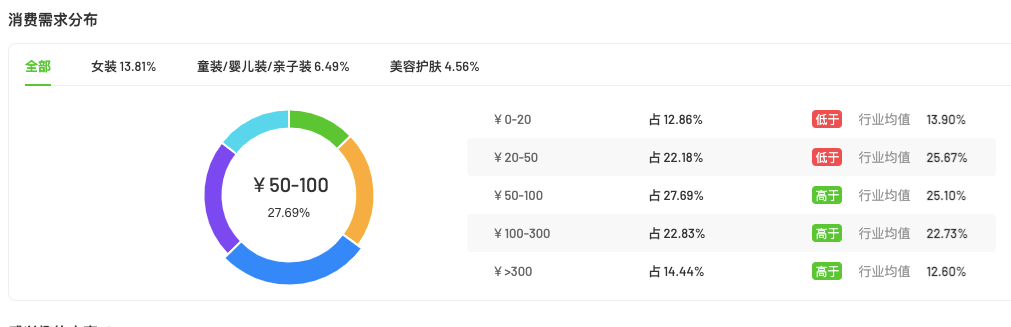 与之对应的是,100元以下价位的产品占比在60%左右。
