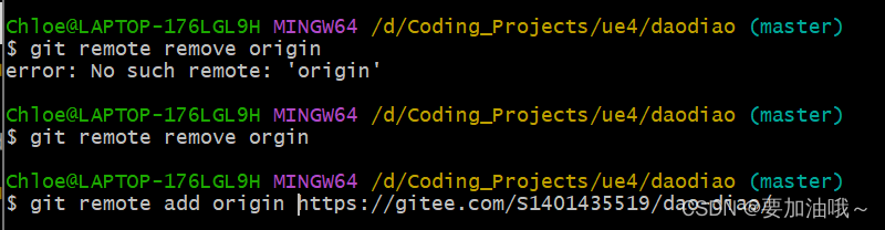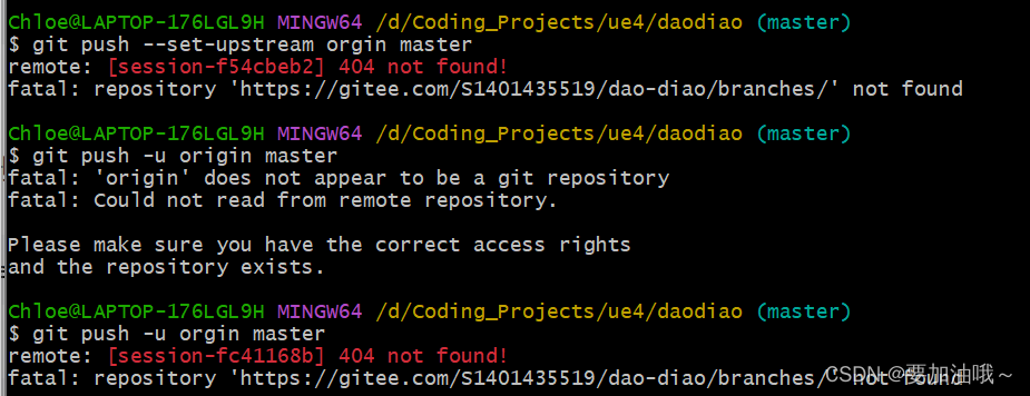 fatal: repository 'https://gitee.com/S1401435519/dao-diao/branches/' not foundfatal: 'origin' does not appear to be a git repository
