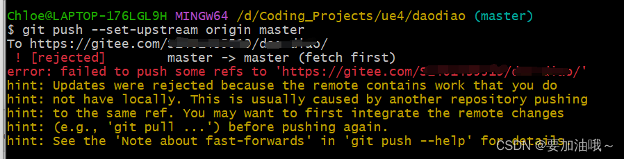 3. error: failed to push some refs to 'https://gitee.com/xxxxxxxxx/xxxdiao/'