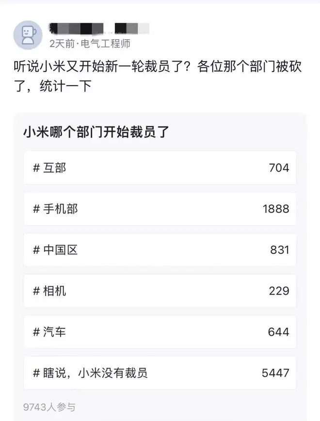 从脉脉上的投票情况来看,此次裁员主要集中在手机部、中国区、和互联网部,汽车业务也有受到波及。