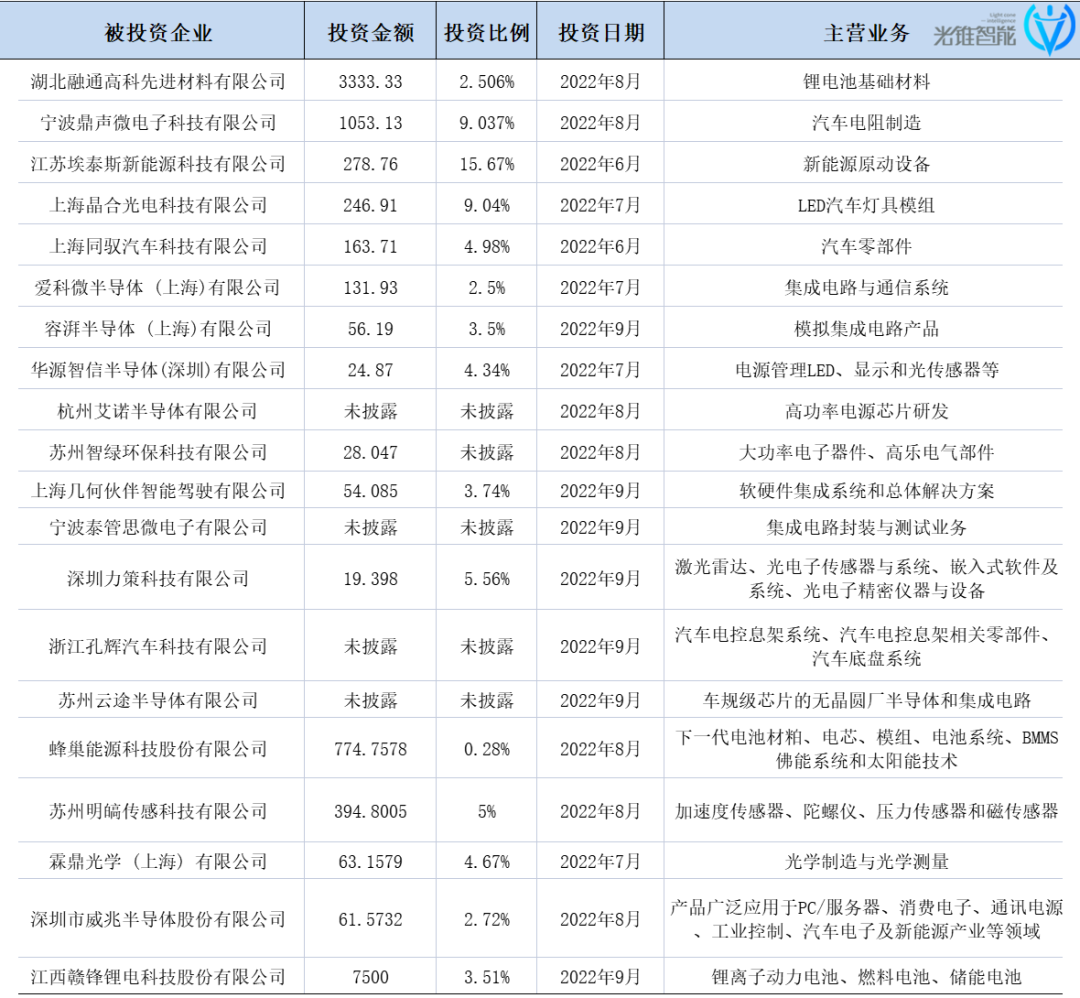 图:小米2022年三季度投资项目(部分),整理:光锥智能