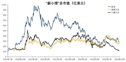 不少投资者依然以销量为锚来进行分析,叠加美联储加息、全球流动性趋紧等原因,在港股与美股上市的国内新势力车企的股价,大多大幅下跌。