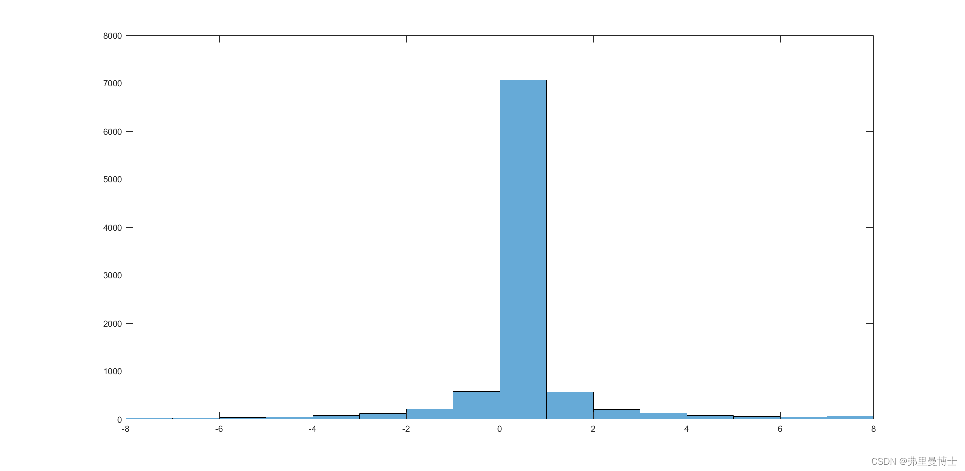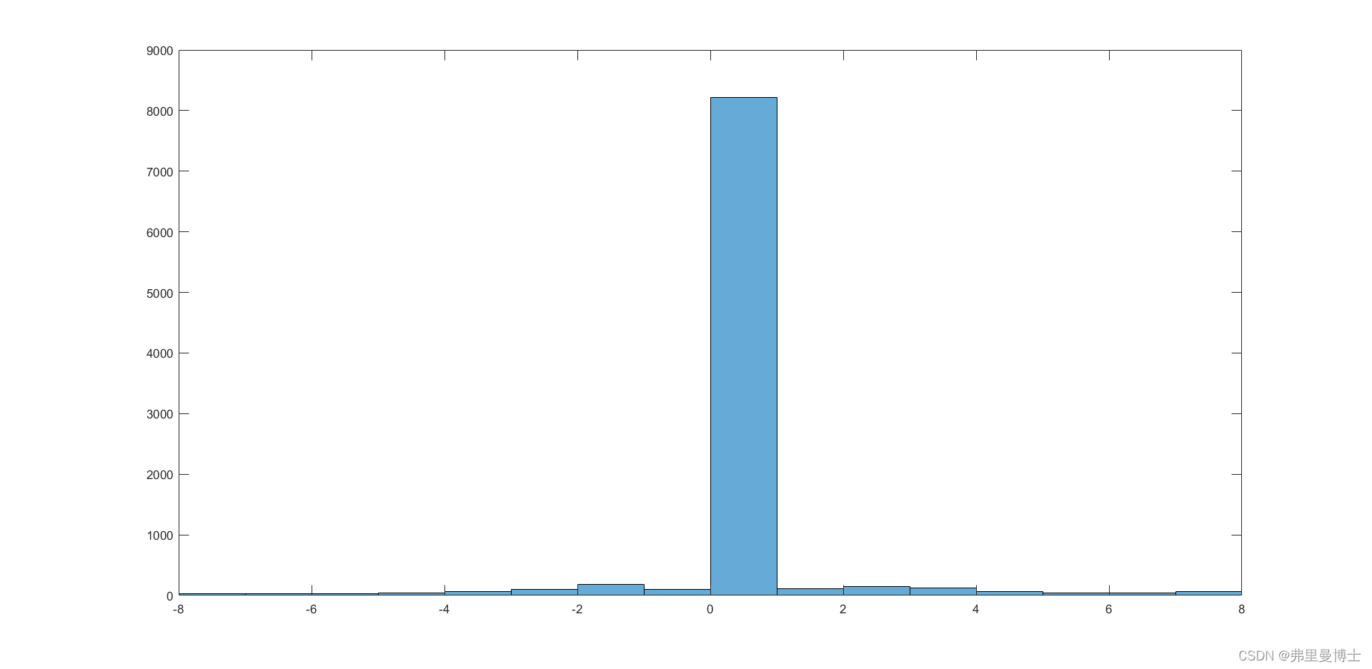 相对于直接嵌入灰度而言,选择使用DCT隐写的一大原因有是因为DCT系数表示的是各种图像变化的程度,因而,从理论上而言,一张自然图像的DCT图像应该呈现一种山峰形的变化趋势。以0对称,左右逐渐下降的形状。