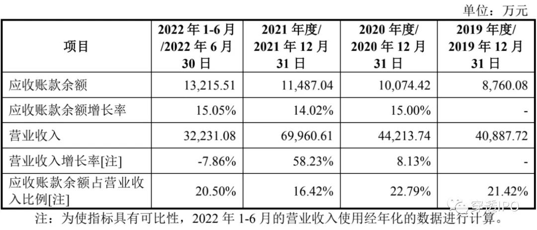 2020年和2021年,营业收入快速走高,带来应收账款迅速增长,为安特磁材埋下了“雷”。2019年-2022年6月,其应收账款分别为8302.76万元、9560.22万元、1.09亿元、1.13亿元,增速在15%左右。2020年应收账款增速超过营业收入增速。