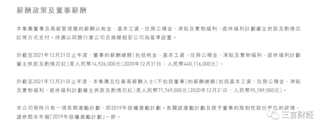 2021年,朱江明总薪酬为954.6万元,其中年薪为166.7万元,股份付款为779.5万元;2020年,朱江明的薪酬为4648.9万元,全部为股份付款。