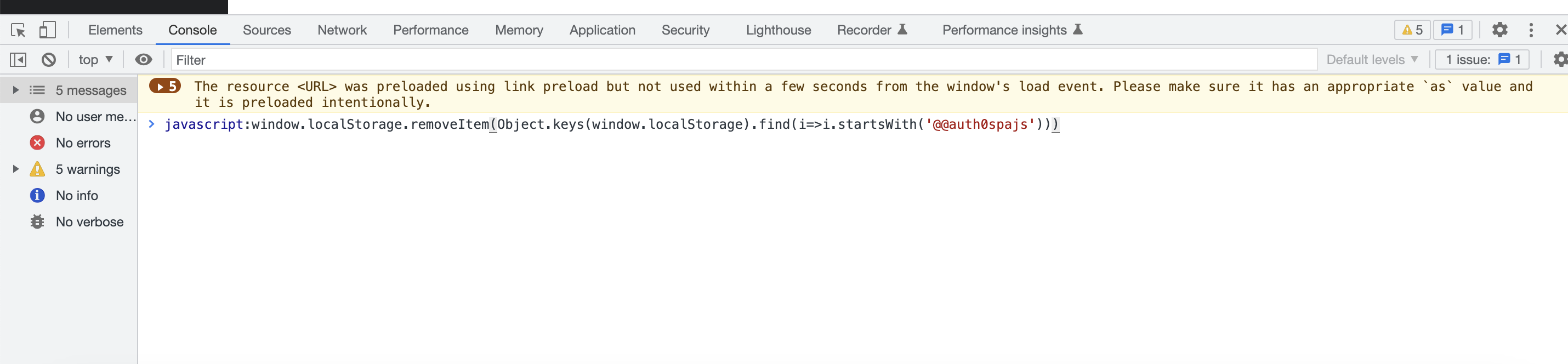 window.localStorage.removeItem(Object.keys(window.localStorage).find(i=>i.startsWith('@@auth0spajs')))