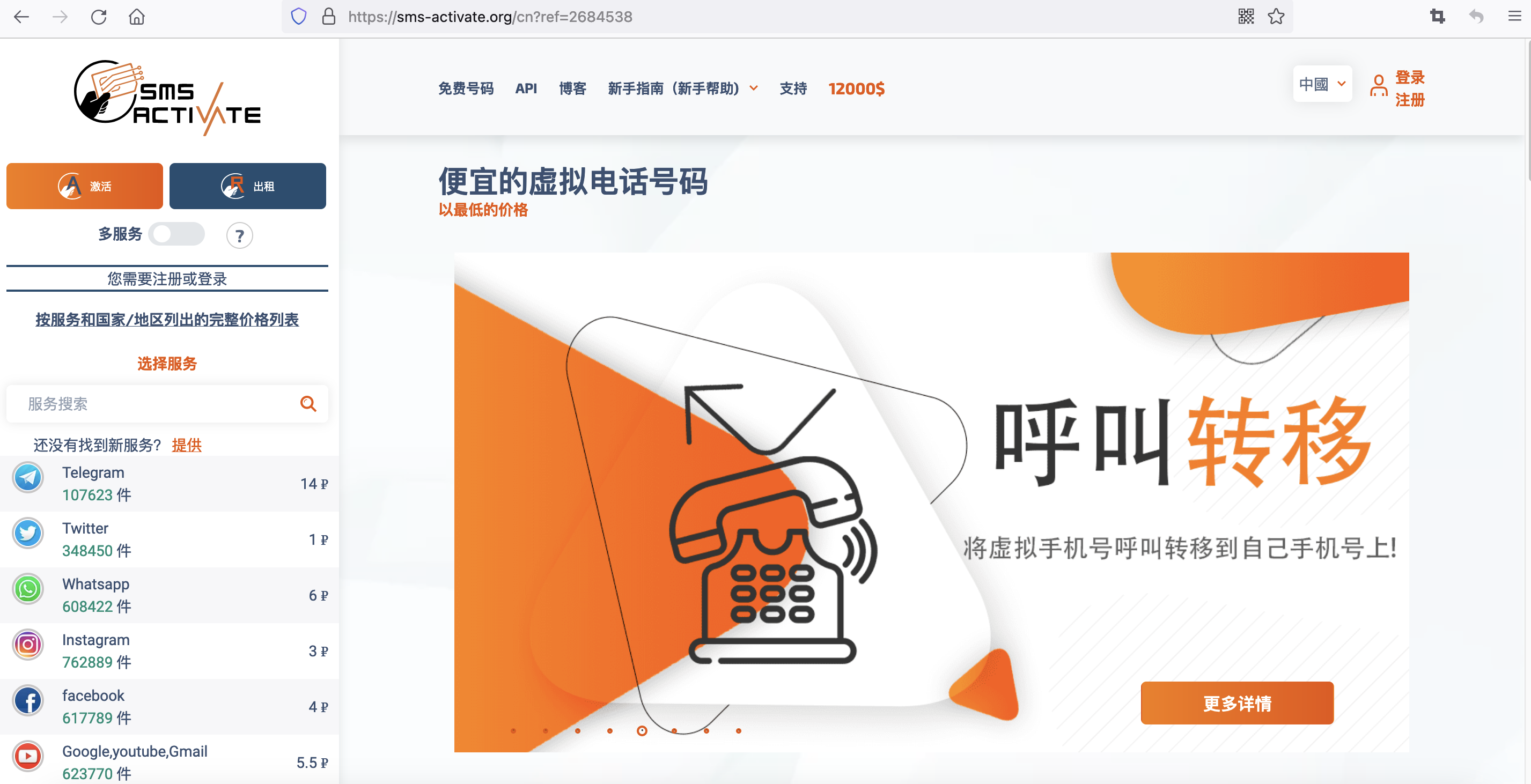 打开地址:https://sms-activate.org/cn?ref=2684538