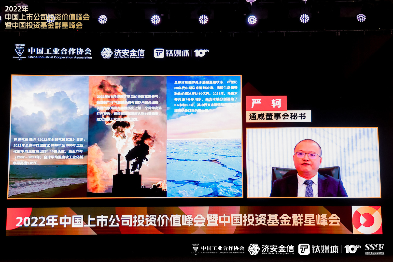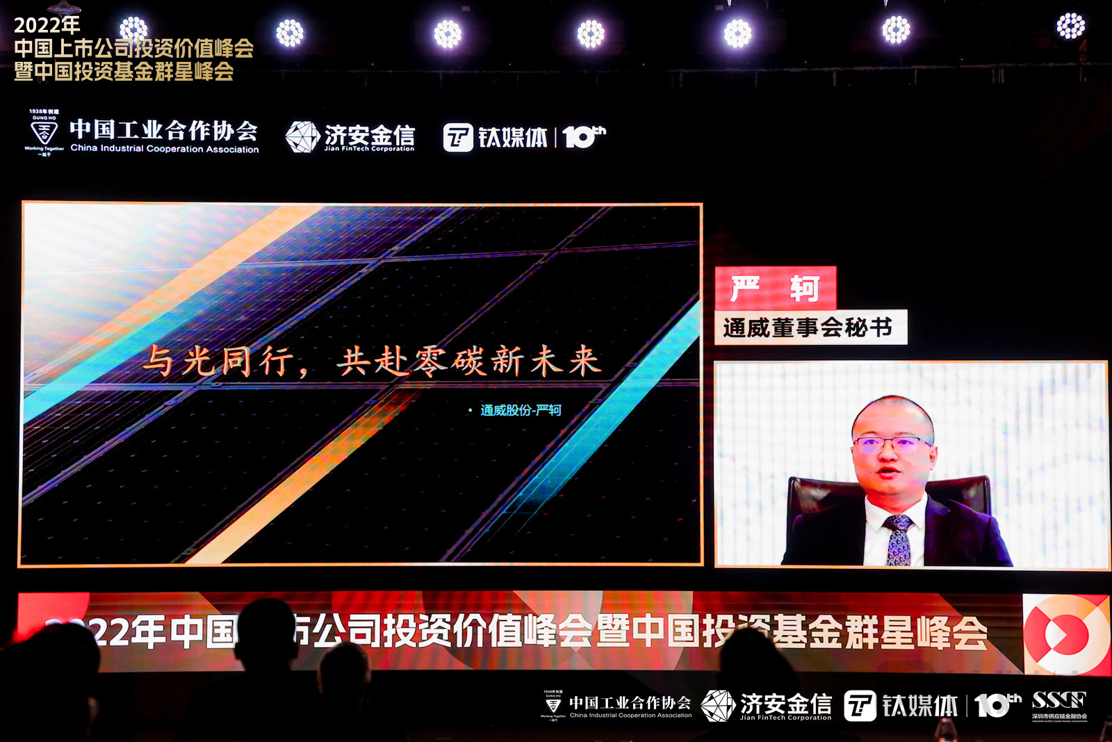尊敬的各位领导、各位专家,各位投资机构:大家下午好,我是通威股份董事会秘书严轲,很荣幸受邀作为上市公司的代表之一于钛媒体十周年之际,借着“与光同行,共赴零碳新未来”这个主题,与大家一起探讨和交流光伏行业的发展情况。