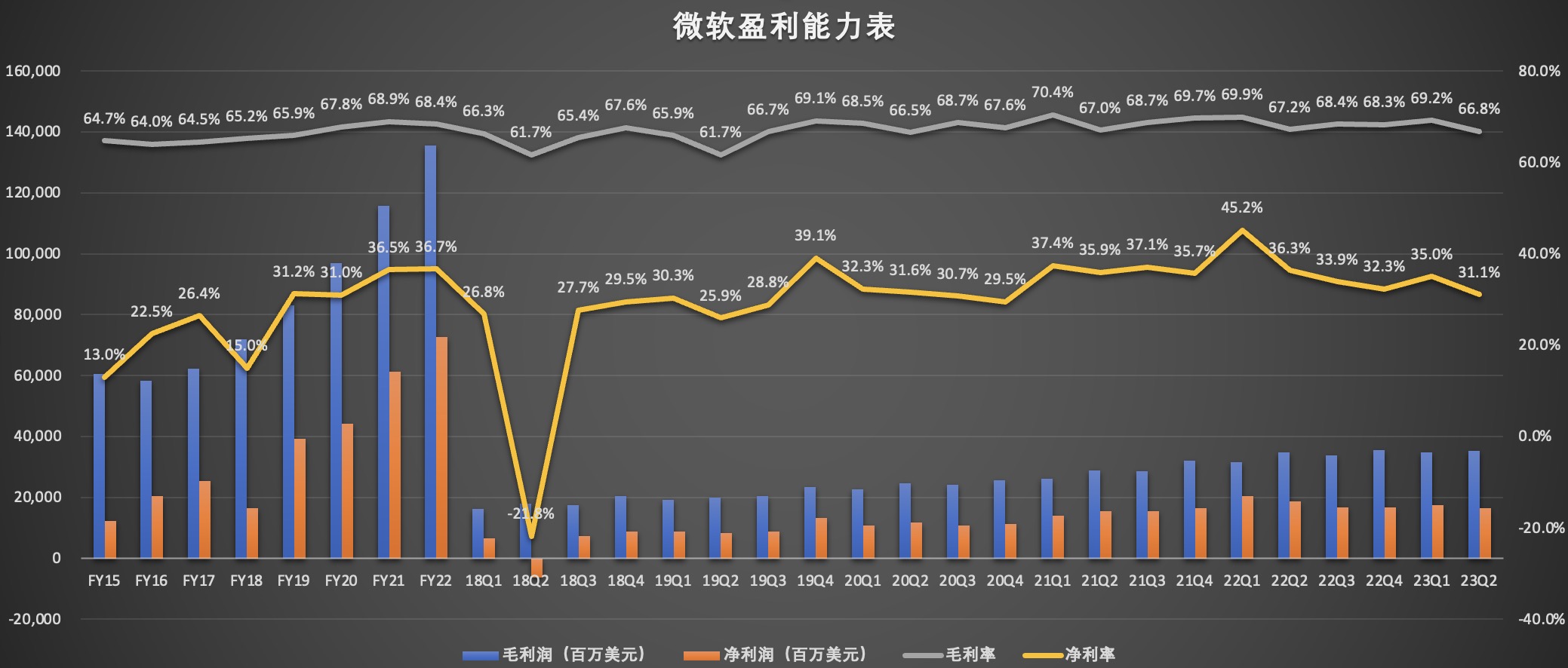 净利润方面更是连续2个季度同比下降。本季度微软的净利润为164亿美元,同比减少12%,环比减少6%,综合来看,微软利润层面的表现确实不佳。