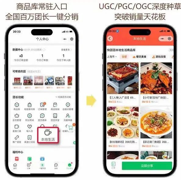 “去年10月快团团就给团长提供用户画像功能了,本地生活业务上线后团长对新业务的运营也会很精准。”有服务商表示,在美团饿了么渗入不足的下沉市场,拼多多的快团团更有优势。“相比社区团购,本地生活属于品质稳定、高客单价、高频业务,很多人日常都有吃什么饭、去哪吃,私域社群的熟人交流氛围更适合本地生活种草。”