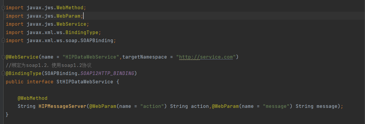 xmlns:pm="http://service.com" ---> 接口中定义的目标名称空间