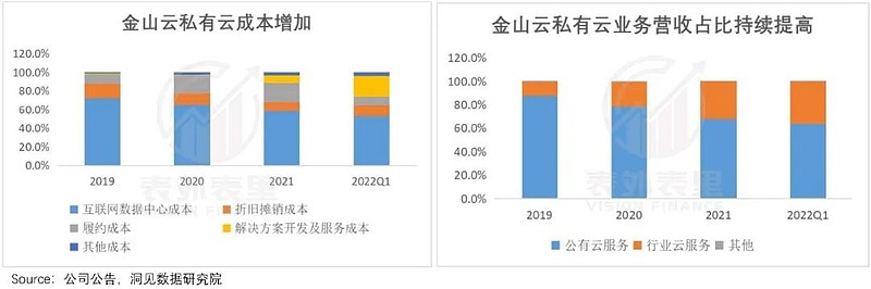 以金山云为例,随着其私有云业务的不断发展,相应所付出的“解决方案开发育服务成本”迅速增长。