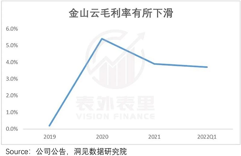 如此一来,拖累了公司整体的经营效率——金山云毛利率在2020年后逐渐下滑。