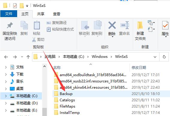 很多装机软件会将需要备份的文件存放在这里,一旦我们用软件正常保存之后,这个Backup文件夹就毫无用处了,因此我们可以打开c盘,依次点击Windows-WinSxS-backup,即可轻松清理里面的文件。