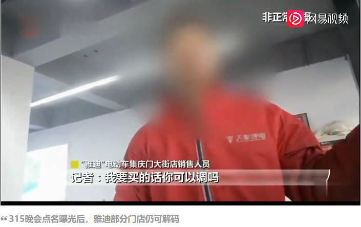 甚至还被央视3·15晚会点名批评,曝出专卖店存在解码提速、非法改装仪表盘等问题。被媒体曝光后,雅迪这种违规行为仍未杜绝。