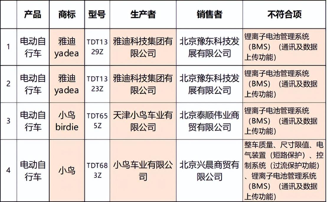 然而有趣的是,从79组不合格产品具体名单看,并没有出现爱玛、小牛等品牌。相反在79组不合格的产品中,雅迪直接占据两组,车辆型号分别为TDT1329Z、TDT1323Z。