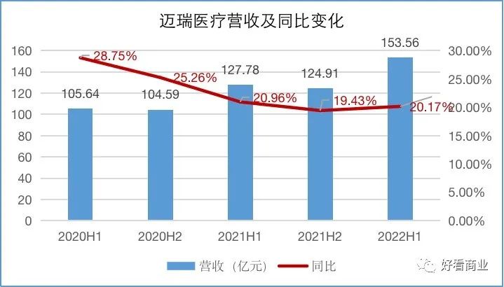迈瑞医疗今年上半年营收153.56亿元,同比增长20.17%;相比2020年同期28.75%的增速出现明显放缓。