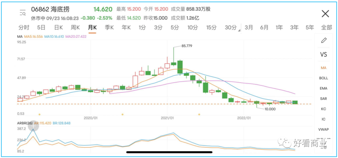 去年初至今,海底捞因逆势扩张失败,业绩深陷泥潭,市值较高点时缩水约4000亿港元。