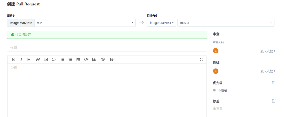 描述 Pull Request:在 Pull Request 页面上,添加标题和描述,说明为什么你进行了这些更改,以及它们解决了什么问题。