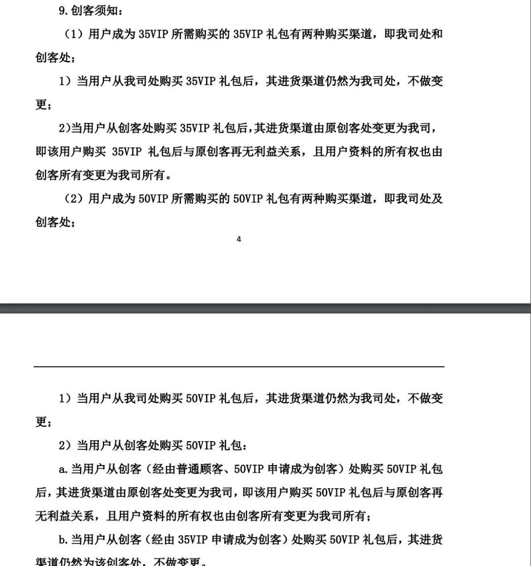 财经无忌登陆创客云商(西安创客村旗下网站)发现,其创客协议中提出的“创客须知”也提到了35VIP与50VIP两种购买渠道。