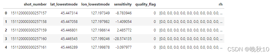 layers=['shot_number','lat_lowestmode','lon_lowestmode', 'sensitivity','quality_flag','rh']