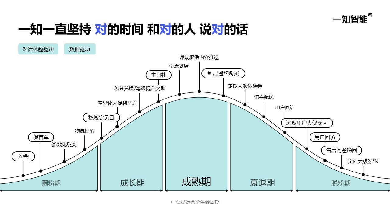 在接触到国内专注AI语音外呼的一知智能后,双方共创了全新的会员触达方式:一知智能利用AI外呼,辅以品牌原有的包裹卡、社群裂变、短信触达等常规方式全域布局私域增粉、活动通知及生日关怀等会员运营场景,助力其实现私域涨粉并进行会员全生命周期精细化运营,重塑业务增长新模式。
