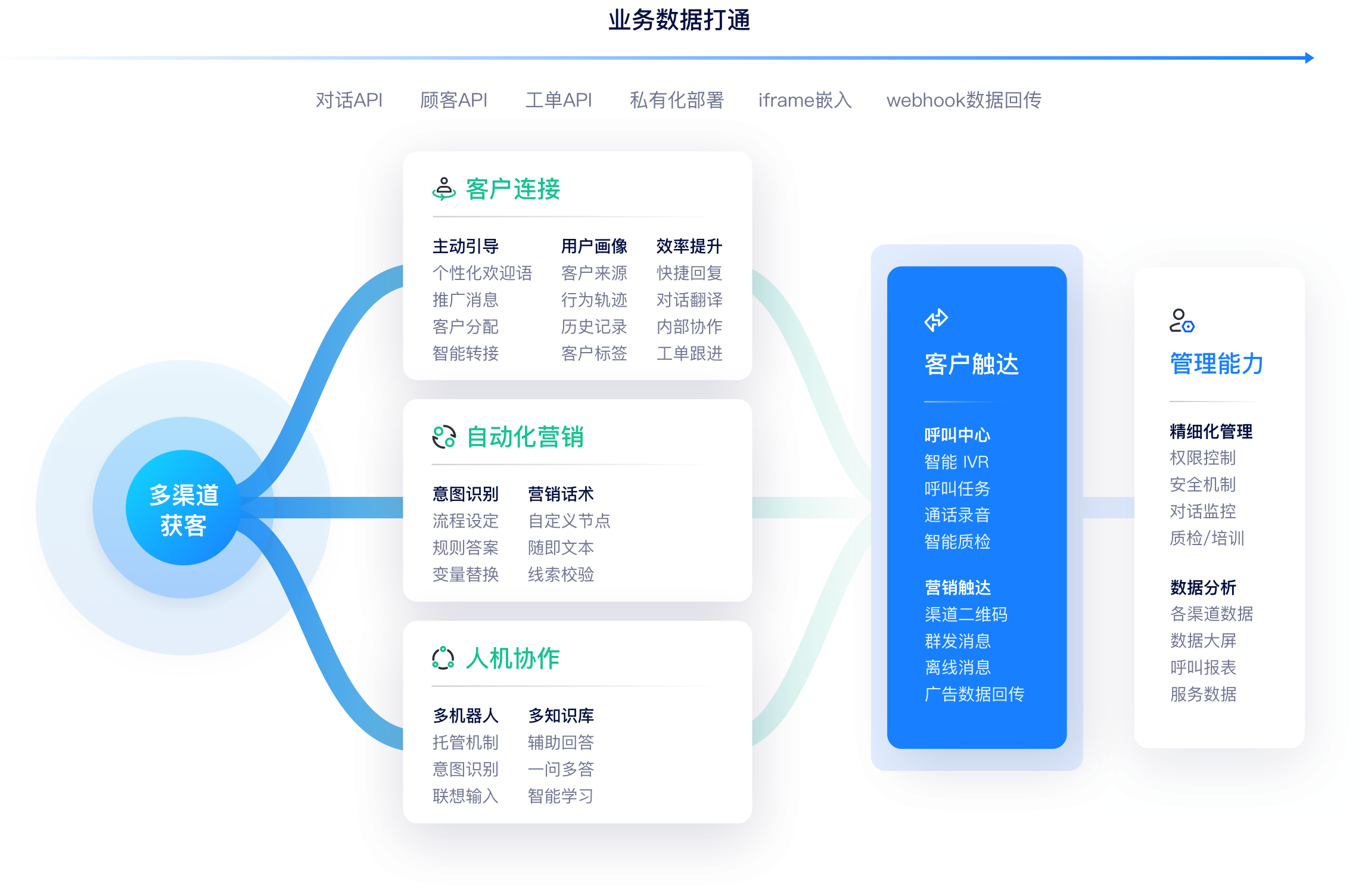 - 将AI智能外呼与企业CRM/SCRM/CDP等系统相结合,助力企业实现高效触达、精准营销。