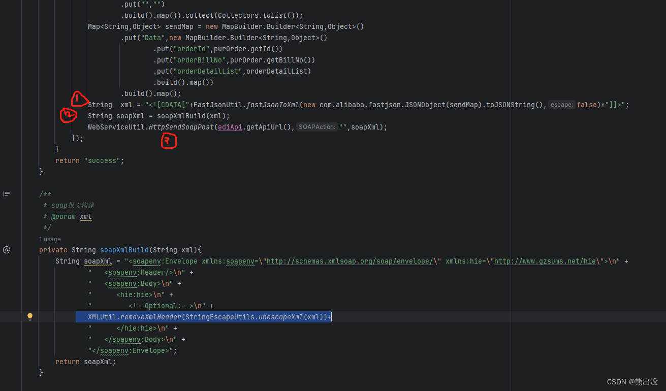1是构建xml,2是把xml放在soapui生成的报文头的参数里,3直接调用工具类发送