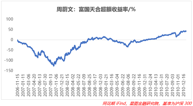 同朱少醒相似,其实周蔚文在升任基金经理的前两年超额收益也明显跑输沪深300。一方面是由于周蔚文坦言自己“本来就属于胆子不那么大的,涨得慢一点,虽然有排名压力,感觉却更踏实一些”,所以在2007年-2008年股票的持仓比例在80%上下,并没有很激进,在涨幅上并没有优势;另一方面当时A股刚结束4年长熊,势头正猛,情绪火热,那我们也知道2008年中央在金融危机下为了提振消费需求,在货币流动性方面采取了极为宽松的政策,并在后续几年效果也逐渐显现,但周蔚文预见了牛市之下泡沫同样在滋生,所以刻意没有去追被显著高估的股票,而这个决定再后来也得到了验证,2008年开年之后,股灾扑面而来,沪深300当年回撤高达65.95%,而同期周蔚文的基金回撤46.75%,也低于同类型基金。从2009年到卸任的两年多的时间内,周蔚文经历了触底反弹、小盘股上下翻飞的震荡行情,为了抵消小盘的震荡,周蔚文对价值股的暴露度开始明显转正,股票持仓比例也有所上升,所以业绩也没有被同类型基金拉开太多,但是整体上并不出彩,任职总回报稳定在140%。