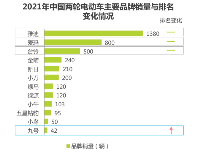 根据艾瑞咨询统计的数据,雅迪、爱玛两大老牌厂商依旧占据2021年国内电动两轮车市场销量榜前两名,分别达到1380万辆和800万辆。小牛电动虽然以103万辆的成绩挤进前十,但和身前的老牌厂商相比还有很大差距。