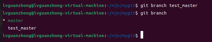 ** 命令:git branch 分支名字** 执行这条命令可创建分支,以test_master为分支名字举例: