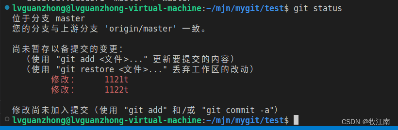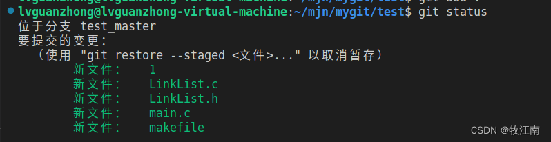 git status命令可以查看git分支的缓冲区下的文件状态。