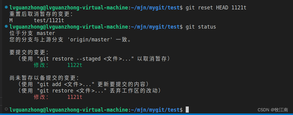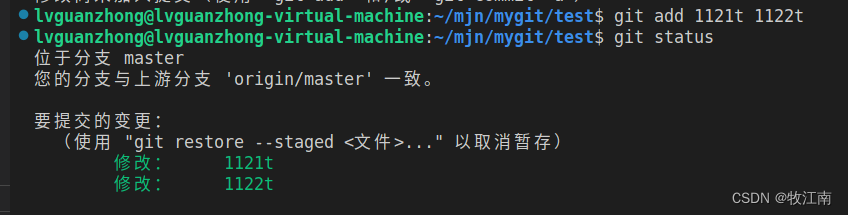 例子如下(有文件1121t和文件1122t需要提交到缓存区):