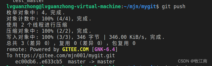** **git push命令是将本地仓库的文件提交到远程仓库。这里以远程仓库master分支为例: