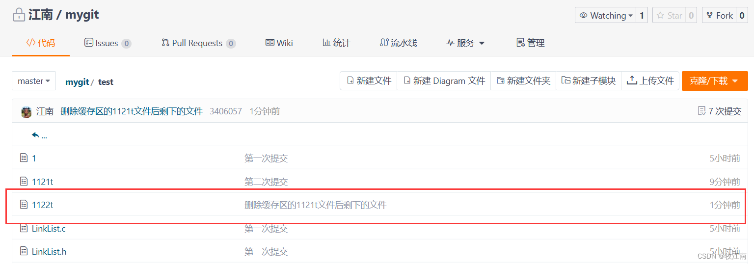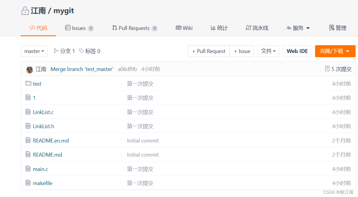 发现远程的仓库master分支已经有我们提交的文件,推送成功。