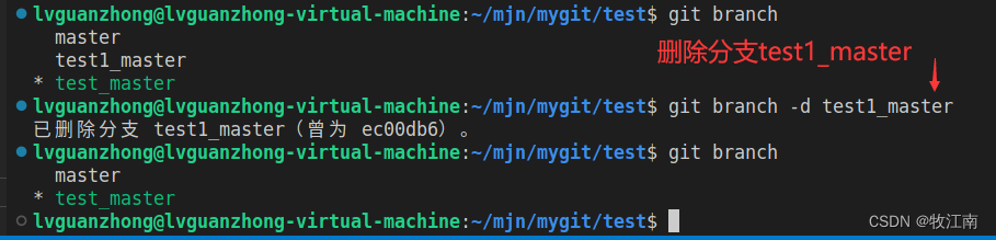 再查看分支发现test1_master分支已经没有了,删除成功。