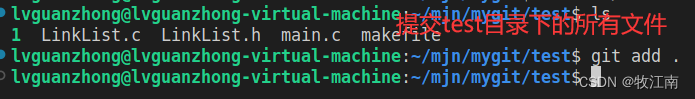 ** *git add 命令可将文件添加到缓存,全部提交可以使用‘.’,意思是包括了所有文件。当然也可以用'.c'来固定提交.c文件。