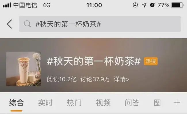 此前,博主papi酱发布了一条「当代年轻人喝奶茶就像喝酒」的主题短视频,用奶茶文化反讽劝酒文化,引起许多人的共鸣。喝奶茶在年轻群体中普遍到有些“强制”。许多品牌的营销,也总是大肆制造话题,「秋天的第一杯奶茶」、「快叫闺蜜给你点」·····