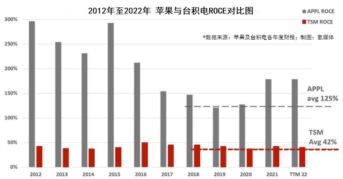 为了让你更清楚的预测苹果与台积电的长期增长率,我通过氢媒体追踪的台积电和苹果的ROCE及RR得出一些值得你关注的关键信息。如下图所示:
