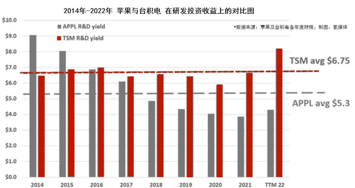 更令人印象深刻的是,台积电在研发投入方面的收益率也优于苹果。