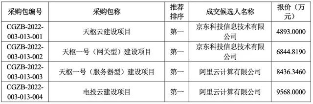与国家电网的合作中,阿里拿下的是电投云和天枢一号(服务器型)项目,京东收获的是天枢云和天枢一号(网关型)建设项目。