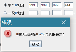 (4)友好地图形用户界面,扫描过程中能显示扫描进度,扫描时间,异常告警窗口(如IP地址范围出界等),在局域网段实现。