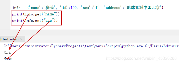 get()方法是根据key值来获取value,使用get()方法的时候,如果key值不存在则会返回None