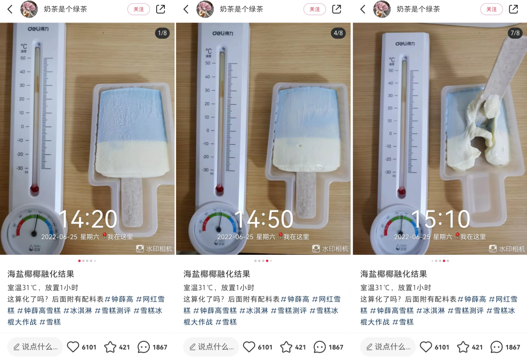 面对质疑,钟薛高像往常一样发布了硬钢式的声明回应称:合规生产,产品成分没问题,检测合格出厂,添加剂符合标准,用烤、晒、加热的方式来测验雪糕品质不科学。