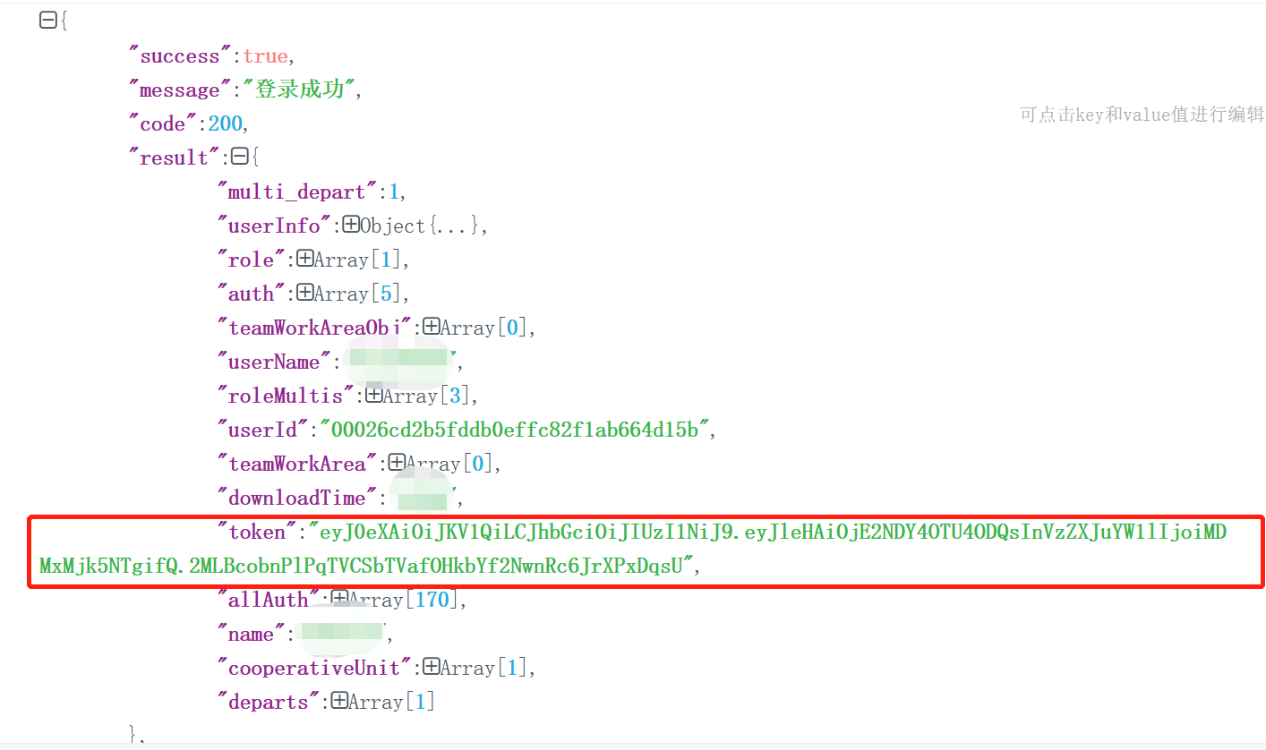 首先来看登录返回数据的格式,通过Json格式化工具后可清晰看到数据格式如下所示: