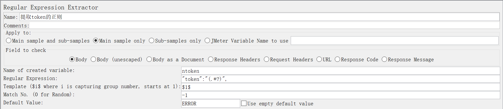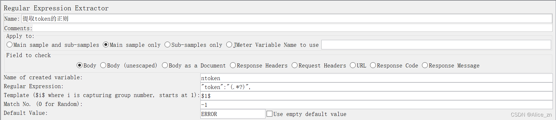 当为负数(-1,-2,-100都可以)时,表示返回全部元素,并且同时会返回一个元素总数的变量,引用时,通过${变量名_1}的方式来取第1个匹配的内容,${变量名_2}来取第2个匹配的内容