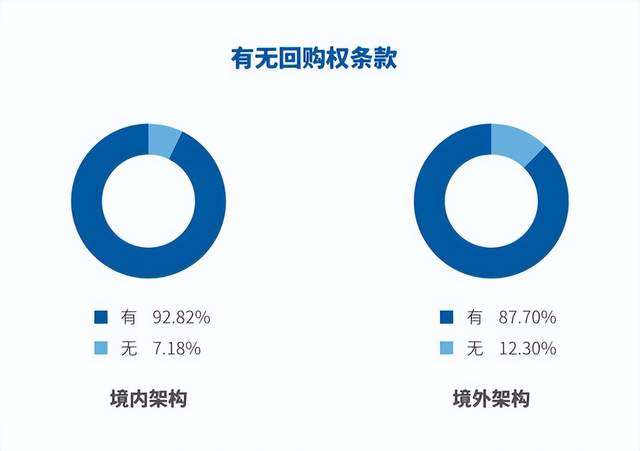 人民币基金和美元基金的投资人均对深燃表示,回购权在投资协议中很常见。从汉坤近五年统计的VC/PE项目数据也可以看出,对于中国境内企业进行的VC/PE项目,无论釆用境内架构还是境外架构,回购权都是常见的条款安排。