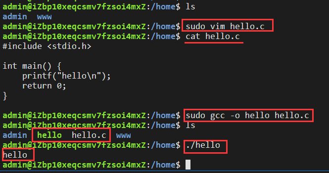 //使用 gcc 编译 hello.c 文件,将生成一个名为 hello 的可执行文件。 gcc -o hello hello.c./:运行可执行文件: